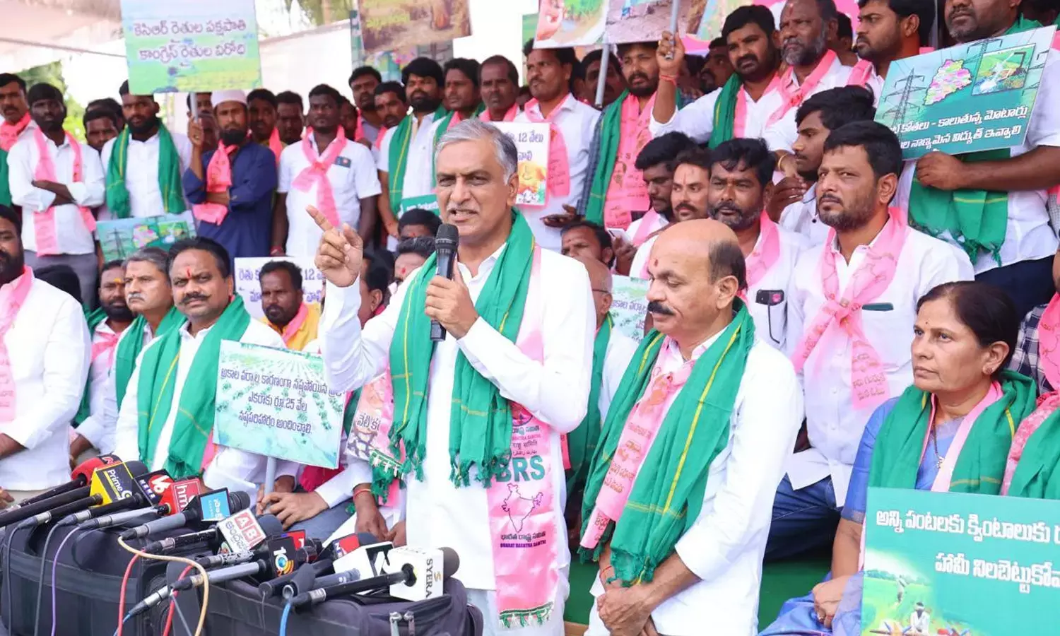 ఈ ప్రభుత్వాన్ని నిద్రలేపడానికి రైతు దీక్షలు చేస్తున్నారని మాజీ మంత్రి హరీశ్రావు అన్నారు. సంగారెడ్డిలో జరిగిన బీఆర్ఎస్ రైతు దీక్షలో ఆయన పాల్గొన్నారు. ఈ సందర్భంగా ఆయన మాట్లాడుతూ వంద రోజుల కాంగ్రెస్ పాలనలో 200 మంది రైతులు చనిపోయారన్నారు. వారి కుటుంబాలను ఏ మంత్రి కూడా పరామర్శించడం లేదని, ఎండిన పంటపొలాలను చూడడానికి రావడం లేదని అన్నారు. కనీసం పొలాలకు నీళ్లు ఇచ్చుకుందామనుకున్నా కరెంటు లేదని అన్నారు. ఇటు నీళ్లు లేక చివరకు కన్నీళ్లే మిగిలాయని ఆన అన్నారు.