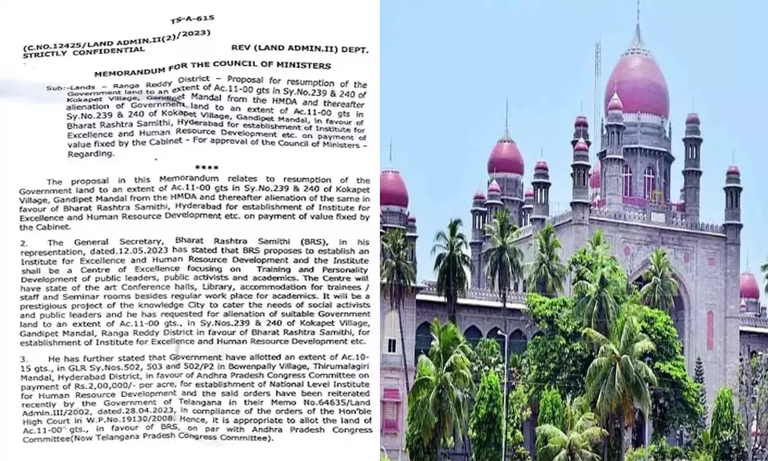 BRSకు కోకాపేటలో 11 ఎకరాలు : హై కోర్టులో పిల్