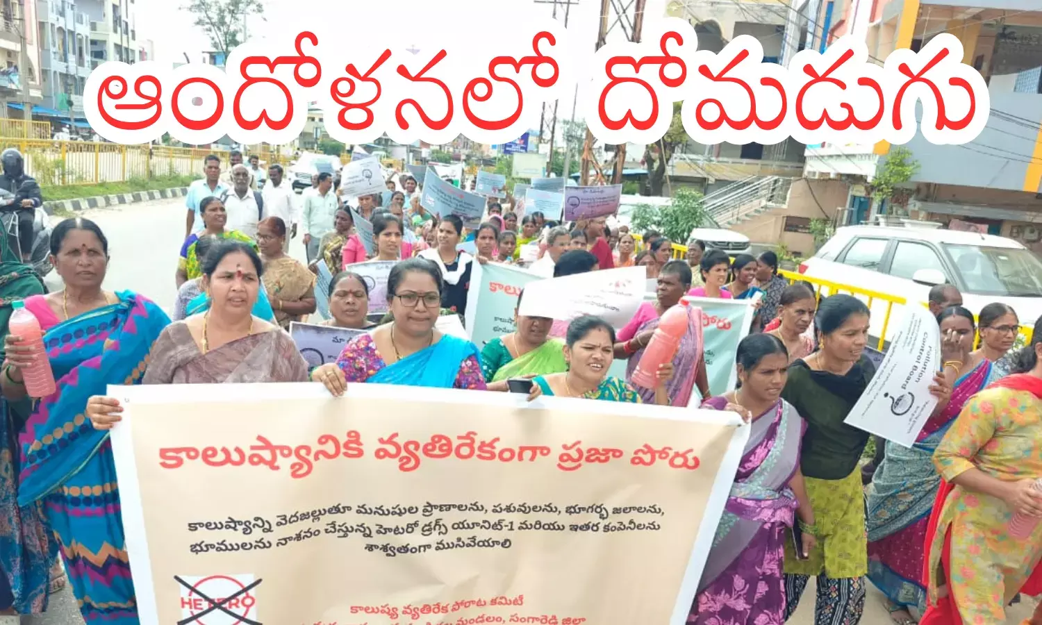 తెలంగాణలోని సంగారెడ్డి జిల్లాలోని దోమడుగు ప్రాంత ప్రజలు ఆందోళనకు దిగారు. కాలుష్యం వెదజల్లుతున్న పరిశ్రమలకు వ్యతిరేకంగా నినాదాలు చేశారు. తమ గ్రామంలోని నీటి వనరులను, భూగర్భ జలాలను కలుషితం చేస్తూ, తమకు అన్ని విధాలుగా నష్టం చేకూర్చుతున్న కాలుష్యకారక కంపెనీలకు వ్యతిరేకంగా దోమడుగు ప్రజలు ప్రదర్శన నిర్వహించారు. నల్లకుంట చెరువు పూర్తిగా విషతుల్యం కావడంతో గత కొన్ని రోజులుగా వాళ్ళు వివిధ రూపాల్లో పోరాటం కొనసాగిస్తున్నారు. శనివారం స్థానికులందరూ కలిసి, వివిధ ప్రజాసంఘాల మద్దతుతో కాలుష్య వ్యతిరేక పోరాట కమిటీ ఆధ్వర్యంలో గ్రామంలో భారీ నిరసన ర్యాలీ చేపట్టారు. నల్లకుంట చెరువు కలుషితం కావడానికి హెటిరో డ్రగ్స్ యూనిట్- 1 కారణమంటూ వాళ్లు పెద్ద ఎత్తున నినాదాలు చేశారు.