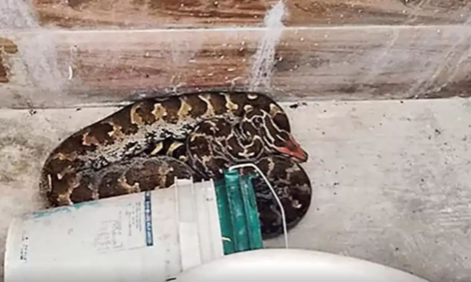 మరుగుదొడ్డిలో భారీ కొండచిలువ