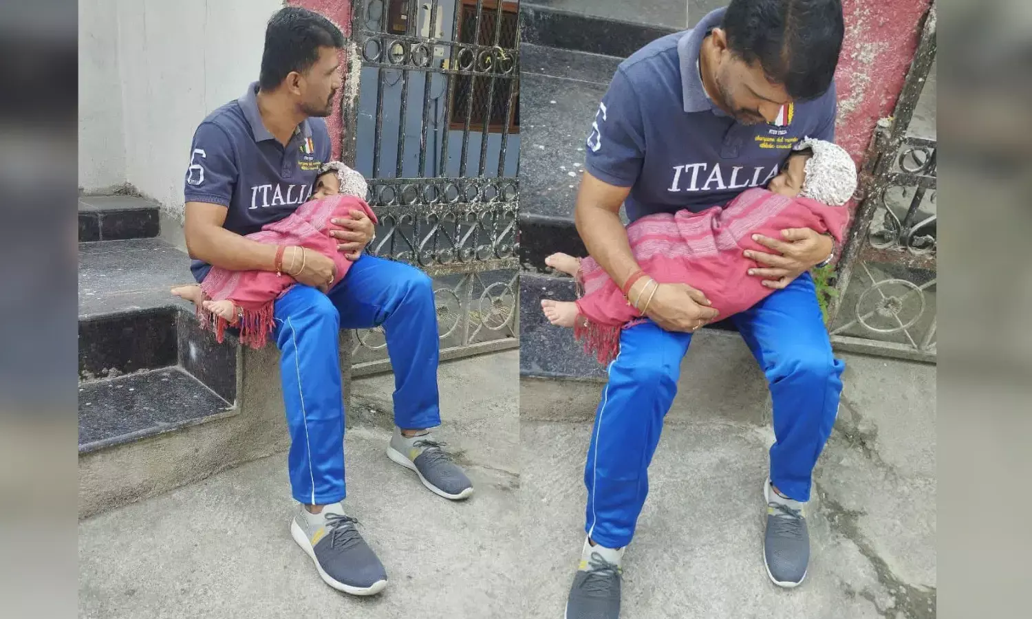 భార్య గ్రూప్ 3 ఎగ్జామ్ రాస్తుంటే ఎగ్జామ్ సెంటర్ ఎదుట 10 నెల బిడ్డను నిద్రపుచ్చుతున్న భర్త..!!