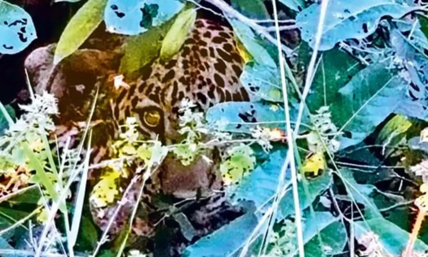 పొదల్లో కదల్లేని స్థితిలో చిరుత