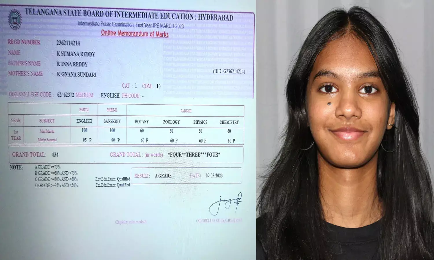 తెలంగాణ ఇంటర్ ఫలితాలు నిన్న సబిత ఇంద్రారెడ్డి విడుదల చేశారు. ఈ ఫలితాల్లో బాలికలు అత్యధిక శాతం ఉత్తీర్ణత సాధించారు. అన్నింటా బాలికలదే పై చేయి అంది. ఇక స్టేట్ ర్యాంక్లలోనూ బాలికలే అగ్రభాగాన నిలిచారు. ఇంటర్ మొదటి సంవతర్సం పరీక్షలలో తార్నాకకు చెందిన సుమన రెడ్డి మూడో ర్యాంకు సాధించారు. ఇంగ్లీష్ లో వందకు 95 మార్కులు, సంస్కృతంలో వందకు 99 మార్కులు, బోటనీలో 60 మార్కులకు అరవై, జువాలజీలో అరవైకి అరవై, ఫిజిక్స్లో అరవైకి అరవై, కెమిస్ట్రీలో అరవైకి అరవై మార్కులను సుమన సాధించింది.