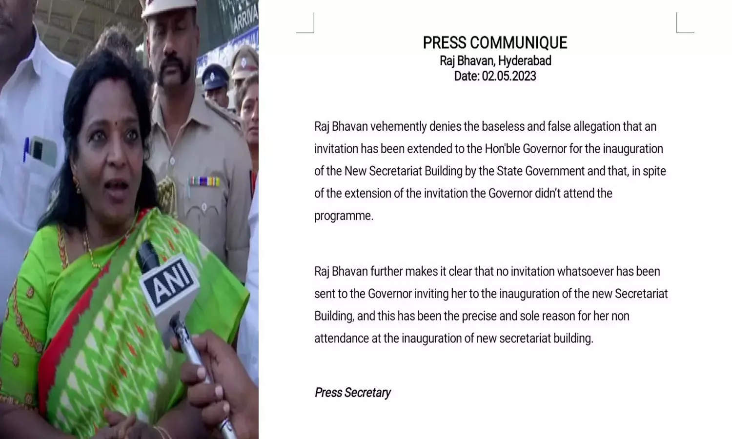 కొత్త సచివాలయం ప్రారంభోత్సవానికి తనకు ఆహ్వానం అందలేదని గవర్నర్ కార్యాలయం ఒక ప్రకటనలో తెలిపింది.