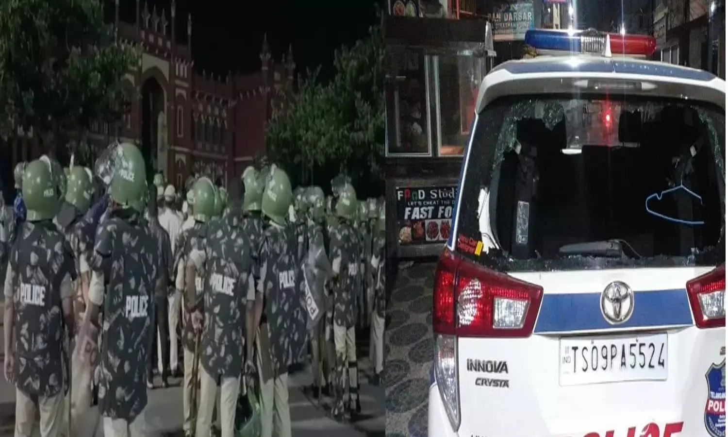 ఓల్డ్ సిటీలో టెన్షన్.. పోలీసు వాహనం ధ్వంసం