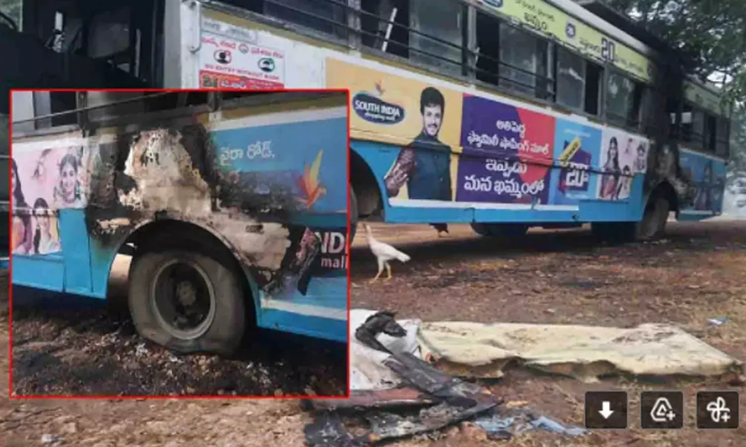 ఆర్టీసీ బస్సుకు నిప్పు పెట్టిన దుండగులు.. ఎవరి పనై ఉంటుంది ?