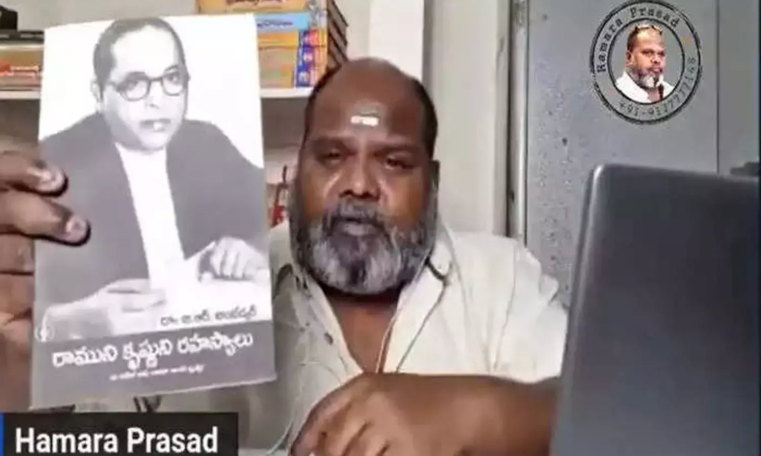 డాక్టర్ బీఆర్ అంబేద్కర్ ను అవమానిస్తూ.. సోషల్ మీడియాలో ఓ వీడియో షేర్ చేసిన వ్యక్తికి తెలంగాణ పోలీసులు సంకెళ్లు వేశారు. నిందితుడు హమారా ప్రసాద్ గా గుర్తించారు. ప్రసాద్ షేర్ చేసిన వీడియోలో తాను మాట్లాడుతూ..అంబేద్కర్ కనుక బతికి ఉంటే తాను ఆయనను చంపేసి ఉండేవానని అన్నాడు. గాంధీని గాడ్సే కాల్చి చంపినట్టు తాను అంబేద్కర్ను హత్య చేసేవాడినని పేర్కొన్నాడు. అంబేద్కర్ రాసిన పుస్తకాన్ని పట్టుకుని చూపిస్తూ ఆయనీ వ్యాఖ్యలు చేశాడు.
