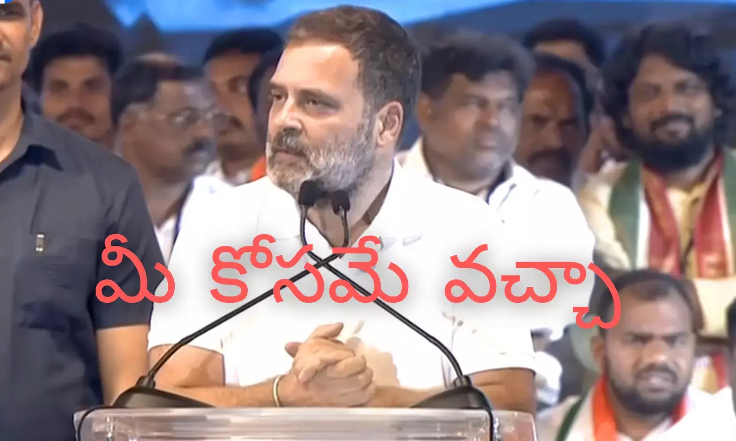 అన్ని ముఖ్యమైన శాఖలను వారి కుటుంబాల వద్దనే పెట్టుకున్నారని రాహుల్ గాంధీ అన్నారు. ప్రజల తెలంగాణ కావాలంటే కాంగ్రెస్ కు అండగా నిలబడండని ఆయన పిలుపునిచ్చారు. కాంగ్రెస్ పార్టీ తెలంగాణ రాష్ట్ర ఆవిర్భావంతో అసలు ప్రయోజనాన్ని ప్రజలకు చేరుస్తుందన్నారు. కాంగ్రెస్ పార్టీ ఇచ్చిన ఆరు గ్యారంటీలను అమలు చేస్తుందన్నారు. రాష్ట్రంలో మహిళలందరూ ఉచితంగా ఆర్టీసీ బస్సుల్లో ప్రయాణం చేయవచ్చని తెలిపారు. రైతులకు భరోసా కింద పదిహేడు వేల రూపాయలు ప్రతి ఎకరాకు ఇస్తామని చెప్పారు. కౌలు రైతులకు కూడా ఇస్తామని తెలిపారు. ఇందిరమ్మ ఇళ్లు నిర్మాణానికి ఐదు లక్షల రూపాయలు ఇస్తామని తెలిపారు. ప్రతి నెల 200 యూనిట్ల వరకూ ఉచిత విద్యుత్తును అందిస్తామని చెప్పారు.