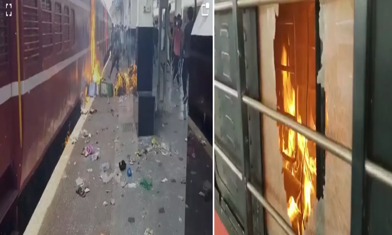 సికింద్రాబాద్ రైల్వే స్టేషన్ లో మూడు గంటల నంచి విధ్వంసం జరుగుతుంది. రైళ్లకు ఆందోళనకారులు నిప్పుపెట్టారు.