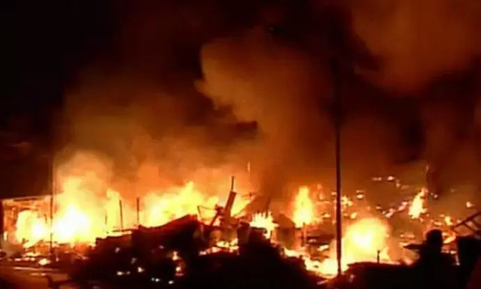 హైదరాబాద్ లోని కోకాపేటలో ఉన్న మెగాస్టార్ చిరంజీవి ఫాం హౌస్ లో అగ్నిప్రమాదం జరిగింది. సైరా నరసింహారెడ్డి సినిమా షూటింగ్ కోసం ఈ ఫాంహౌస్ లో భారీ సెట్టింగ్ వేశారు. అయితే ఈ సెట్టింగ్ కు మంటలంటుకున్నాయి. పెద్దయెత్తున అగ్నికీలలు ఎగసి పడుతున్నాయి. సైరా సినిమా సెట్టింగ్ అగ్నికి ఆహుతి అయినట్లు తెలుస్తోంది. అగ్నిమాపక సిబ్బంది చిరు ఫాంహౌస్ కు చేరుకుని మంటలను ఆర్పే ప్రయత్నం చేస్తున్నారు.