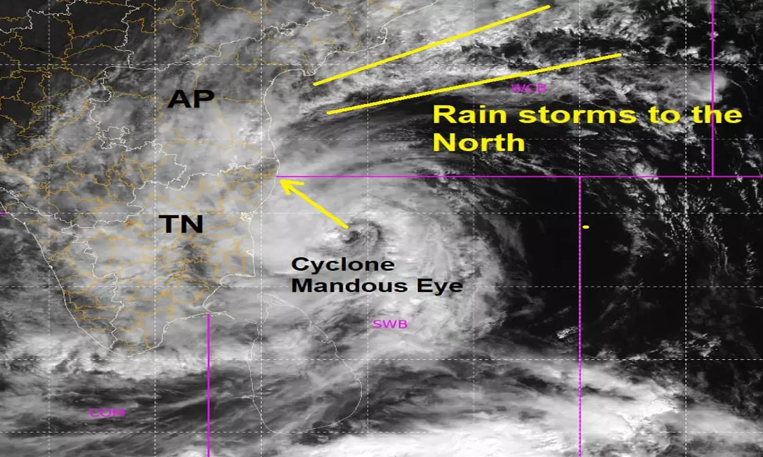 బంగాళాఖాతంలో తీవ్రతుపానుగా ఉన్న మాండూస్.. తుపానుగా బలహీనపడింది. ప్రస్తుతం చెన్నైకి తూర్పు ఆగ్నేయ దిశగా 260 కిలోమీటర్ల దూరంలో కేంద్రీకృతమై ఉంది. తుపాను గమనాన్ని కచ్చితంగా అంచనా వేసేందుకు కారైక్కాల్, చెన్నైలోని డాప్లర్ వెదర్ రాడార్లతో పరిశీలిస్తున్నట్టు భారత వాతావరణ విభాగం వెల్లడి (ఐఎండీ) వెల్లడించింది. వాయవ్య దిశగా పయనించి.. ఈ అర్థరాత్రి తర్వాత పుదుచ్చేరి, శ్రీహరి కోటల మధ్య మహాబలిపురంకు సమీపంలో తీరం దాటనున్నట్లు ఐఎండీ అంచనా వేసింది.