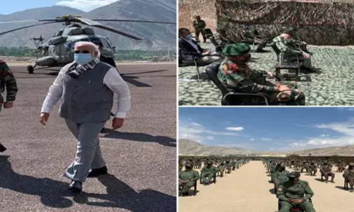 దేశం నలుదిక్కుల నుంచి భారత్ ను రక్షిస్తున్నారని ప్రధాని నరేంద్రమోదీ ప్రశింసించారు. మోదీ లడ్హాఖ్ లో పర్యటించి సైనికుల ను ఉద్దేశించి ప్రసంగించారు. మీ సేవలను దేశం ఎప్పుడూ మరచిపోదన్నారు. దేశ సరిహద్దులను సమర్థవంతంగా, ధైర్యంగా కాపాడుతున్నారని మోదీ కొనియాడారు. సైనికుల ధైర్యసాహసాలు అజరామరమని చెప్పారు. అత్యంత కఠిన పరిస్థితుల్లో దేశాన్ని కాపాడుతున్న మీ రుణం తీర్చుకోలేనిదని మోదీ అన్నారు. యుద్ధ భూమిలో ఉన్న మీరే మాకు ప్రేరణ అని మోదీ చెప్పారు. భారతమాత శత్రువులు మీ పరాక్రమాన్ని రుచి చూశారన్నారు. సైనికుల ధైర్యసాహసాలు పర్వతాల తరహాలోనే ధృఢమైనవని చెప్పారు. శత్రువులు మీ కళ్లలో ధైర్యం చూసి భయపడుతున్నారన్నారు. గాల్వాన్ లోయలో ప్రాణాలు కోల్పోయిన సైనికులుకు మోదీ మరోసారి శ్రద్ధాంజలి ఘటించారు. లేహ్, లడ్హాఖ్ భారత్ లో అంతర్భాగమని, వాటిని భారత్ నుంచి ఎవరూ వేరు చేయలేరని మోదీ పరోక్షంగా చైనాకు వార్నింగ్ ఇచ్చారు. ఆక్రమించాలని చూస్తే ఊరుకునేది లేదని హెచ్చరించారు. ప్రపంచ శాంతి కోసం తొలుత ప్రయత్నిస్తామన్నారు. సరిహద్దు ప్రాంతాల్లో మౌలిక సదుపాయాలను వేగంగా విస్తరిస్తున్నామని చెప్పారు.