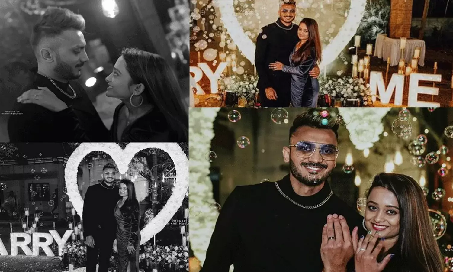 అక్షర్ బర్త్ డే, ఎంగేజ్ మెంట్ ఒకేరోజు కావడంతో సోషల్ మీడియాలో అతనికి విషెస్ వెల్లువెత్తాయి. సహచరుడు యుజ్వేంద్ర చాహల్ సహా పలువురు క్రికెటర్లు, అభిమానులు శుభాకాంక్షలతో ఇన్స్టాగ్రామ్ను మోతెక్కించారు. అక్షర్ నిశ్చితార్థం విషయాన్ని తొలుత అతడి గుజరాత్ టీమ్మేట్ చింతన్ గాజా సోషల్ మీడియా ద్వారా వెల్లడించాడు. ఇన్స్టాగ్రామ్ స్టోరీస్లో అక్షర్-మేహ నిశ్చితార్థం ఫొటోలను షేర్ చేశాడు. అక్షర్ మోకాళ్లపై నిల్చుని ప్రపోజ్ చేస్తున్నట్టుగా ఉన్న ఆ ఫోటోలో.. బ్యాక్ గ్రౌండ్ లో లవ్ సింబల్, మ్యారీ మీ అనే అక్షరాలు కనిపించాయి. ప్రస్తుతం ఈ ఎంగేజ్ మెంట్ ఫోటోలు నెట్టింట వైరల్ అవుతున్నాయి.