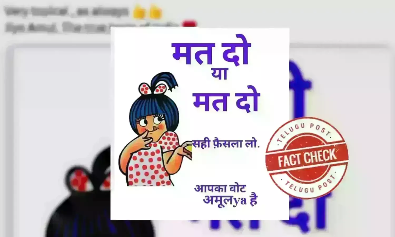 ان دنوں سوشل میڈیا پلیٹ فارم پر ہندی متن کے ساتھ ایک تصویر گردش کر رہی ہے۔“मत दो या मत दो , सही फ़ैसला लो.आपका वोट अमूलya है”