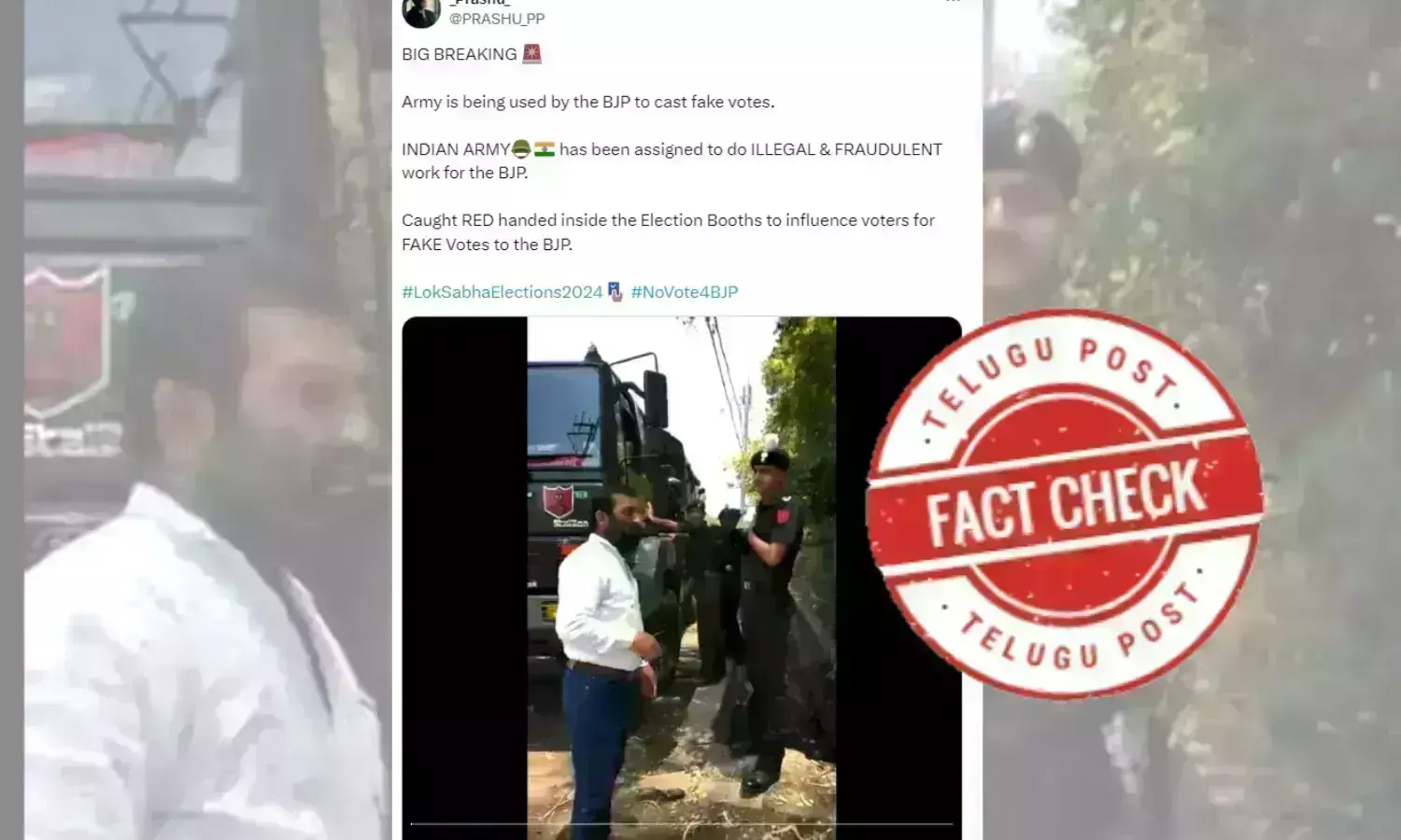 ایسا ہی ایک ویڈیو ٹوئٹر پر گردش کر رہا ہے جس میں فوجی اہلکاروں کو فوج کے ایک ٹرک کے قریب دکھایا گیا ہے اور دعویٰ کیا جا رہا ہے کہ وہ رائے دہندگان کو متاثر کر رہے ہیں اور بی جے پی کو جعلی ووٹ ڈال رہے ہیں۔ اس دعوے کو کچھ ایکس صارفین نے "بگ بریکنگ" کے عنوان کے ساتھ شیئر کیا ہے۔