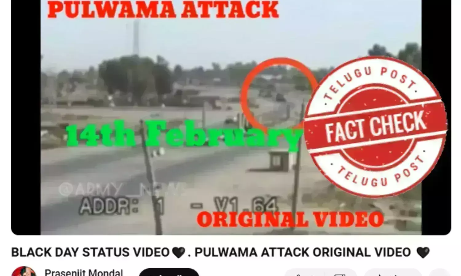 اس بیچ، سوشل میڈیا پلوامہ دہشت گردانہ حملے کا ایک ویڈیو شئیر کرتے ہوئے دعویٰ کیا جارہا ہیکہ یہ حقیقی ویڈیو ہے۔ اس میں دکھایا گیا ہیکہ ایک کار [دہشت گردوں کی] ایک فوجی ٹرک کو پیچھے سے ٹکر دیتی ہے اور اسکے بعد ایک بڑا دھماکہ ہوتا ہے۔