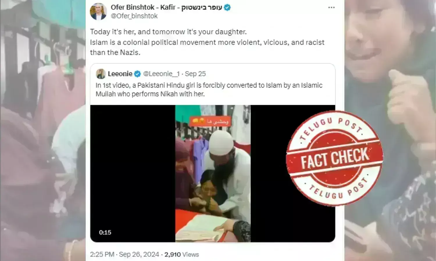 سوشل میڈیا پر ایک کم عمر لڑکی سے کاغذات پر جبرن دستخط کروانے کا ویڈیو وائرل ہورہا ہے۔ وائرل پوسٹ میں دعویٰ کیا جارہا ہیکہ پاکستان میں چند لوگوں نے ایک ہندو لڑکی کی جبرن تبدیلی مذہب کرواکر ایک مسلم شخص سے اسکی جبری شادی کروارہے ہیں۔
