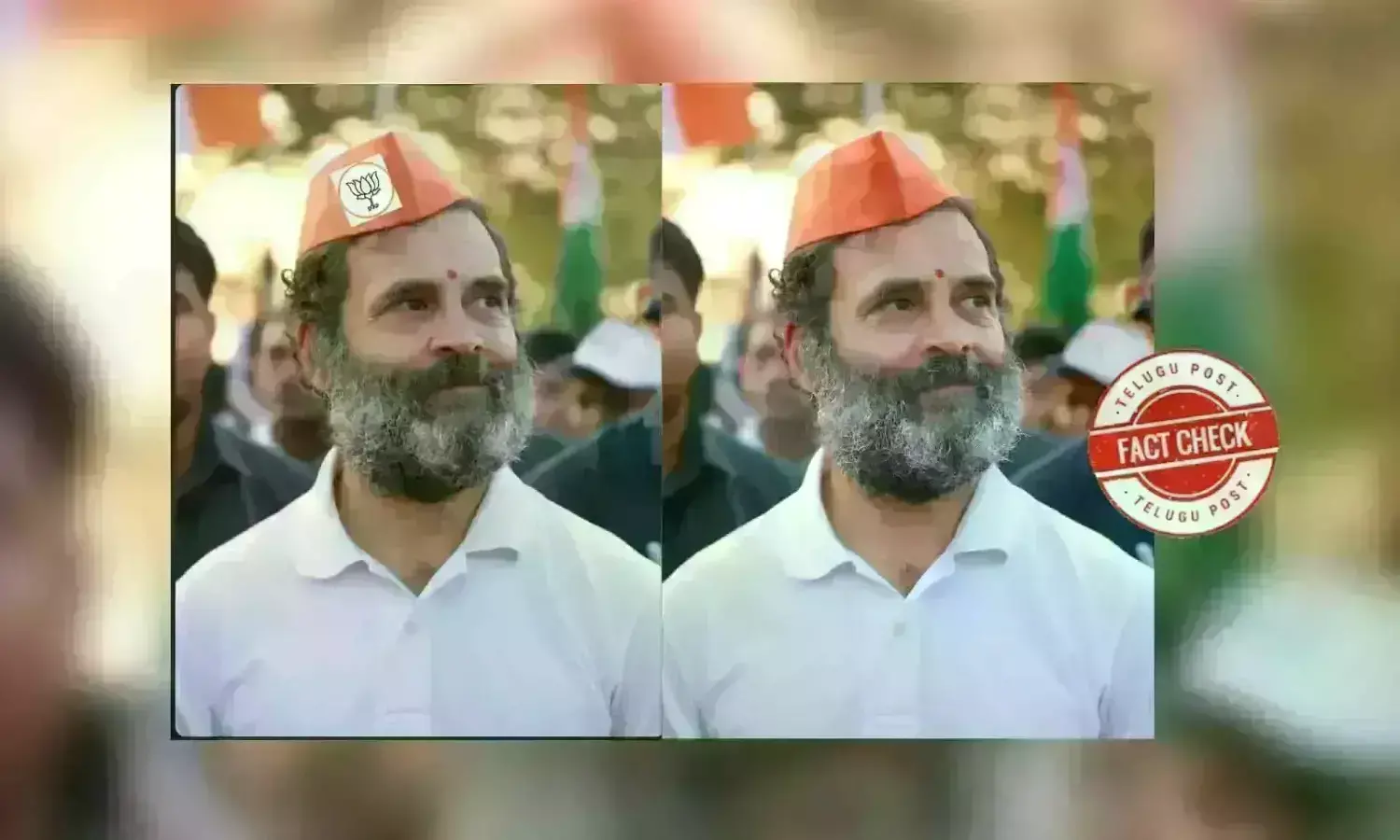 Fact Check: راہل گاندھی نے کمل کے نشان والی بھگوا ٹوپی نہیں پہنی