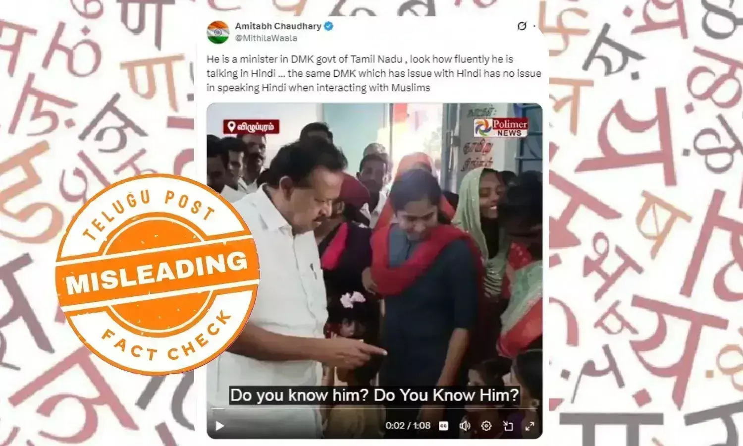 تلگو پوسٹ کی فیکٹ چیک ٹیم نے وائرل پوسٹ میں کئے گئے دعوے کی جانچ پڑتال کے بعد پایا کہ ڈی ایم کے وزیر کی بچوں کے ساتھ کی گئی ہندی بات چیت کو گمراہ کن بیانئے کے ساتھ شئیر کیا گیا ہے۔