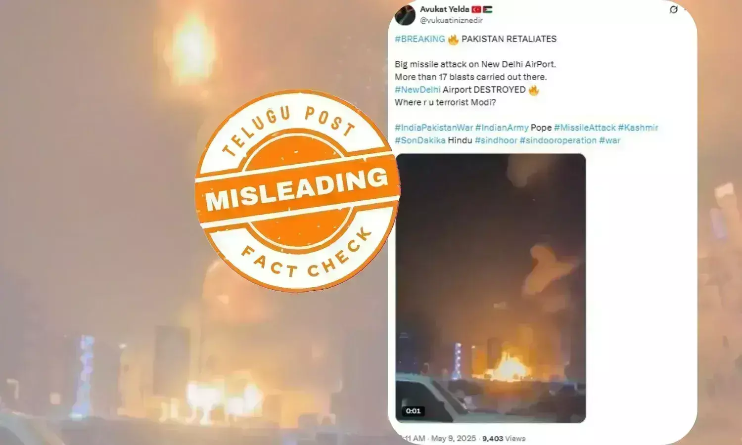 دونوں ممالک کے بڑھتے تناو کے بیچ، سوشل میڈیا پر ایک دھماکہ کا ویڈیو شئیر کرتے ہوئے کچھ صارفین دعویٰ کررہے ہیں کہ "پاکستانی کے میزائل حملے میں نئی دہلی کا ہوائی اڈہ تباہ ہوگیا۔"