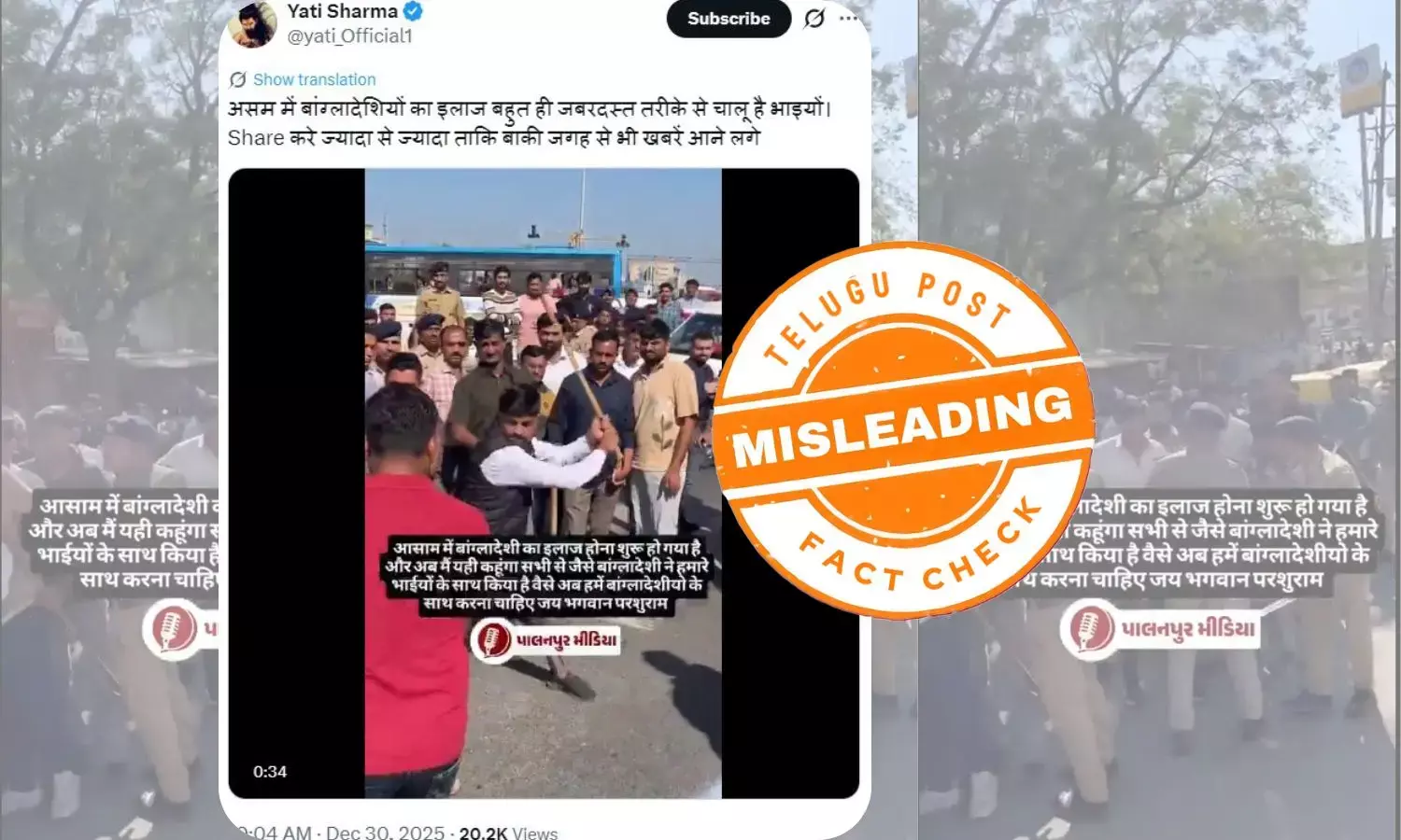 تلگو پوسٹ کی فیکٹ چیک ٹیم نے وائرل پوسٹ میں کئے گئے دعوے اور ویڈیو کی جانچ پڑتال کی تو پایا کہ یہ ویڈیو آسام کا نہیں بلکہ گجرات کا ہے اور جس نوجوان کی پٹائی کی جارہی ہے وہ کوئی غیر قانونی بنگلہ دیشی ایمگرنٹ نہیں بلکہ ایک ملزم ہے۔