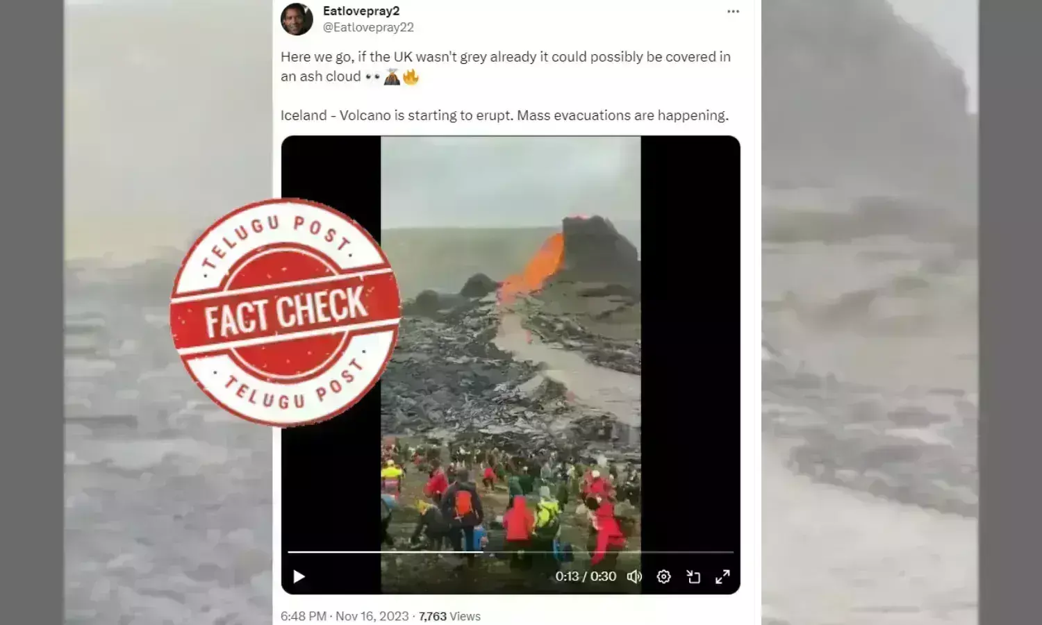 اس بیچ سوشل میڈیا پر ایک ویڈیو گردش کر رہا ہے جس میں آتش فشاں کے پھٹنے اور لوگوں کو جان بچاکر بھاگتے ہوئے دکھایا گیا ہے ۔ اس ویڈیو کے کیپشن میں لکھا ہے کہ 'آئس لینڈ- آتش فشاں پھٹنا شروع ہو گیا ہے۔ بڑے پیمانے پر لوگوں کا انخلا ہو رہا ہے۔'