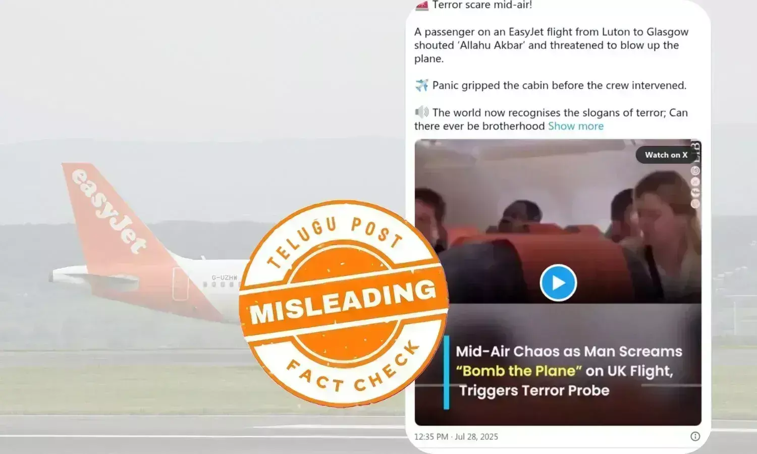 تلگو پوسٹ کی فیکٹ چیک ٹیم نے وائرل پوسٹ میں کئے گئے دعوے کی جانچ پڑتال میں پایا کہ لندن کے لوٹان ائیر پورٹ سے اسکاٹ لینڈ کے گلاسگو شہر جانے والی 'ایزی جیٹ' فلائیٹ کے دوران 'اللہ اکبر' اور انگریزی میں 'ٹرمپ کی موت' اور 'امریکہ تیرا خاتمہ ہو' جیسے نعرے لگانے والا شخص کوئی مسلم نہیں بلکہ بھارت سے تعلق رکھنے والا ابھئے نائیک ہے۔
