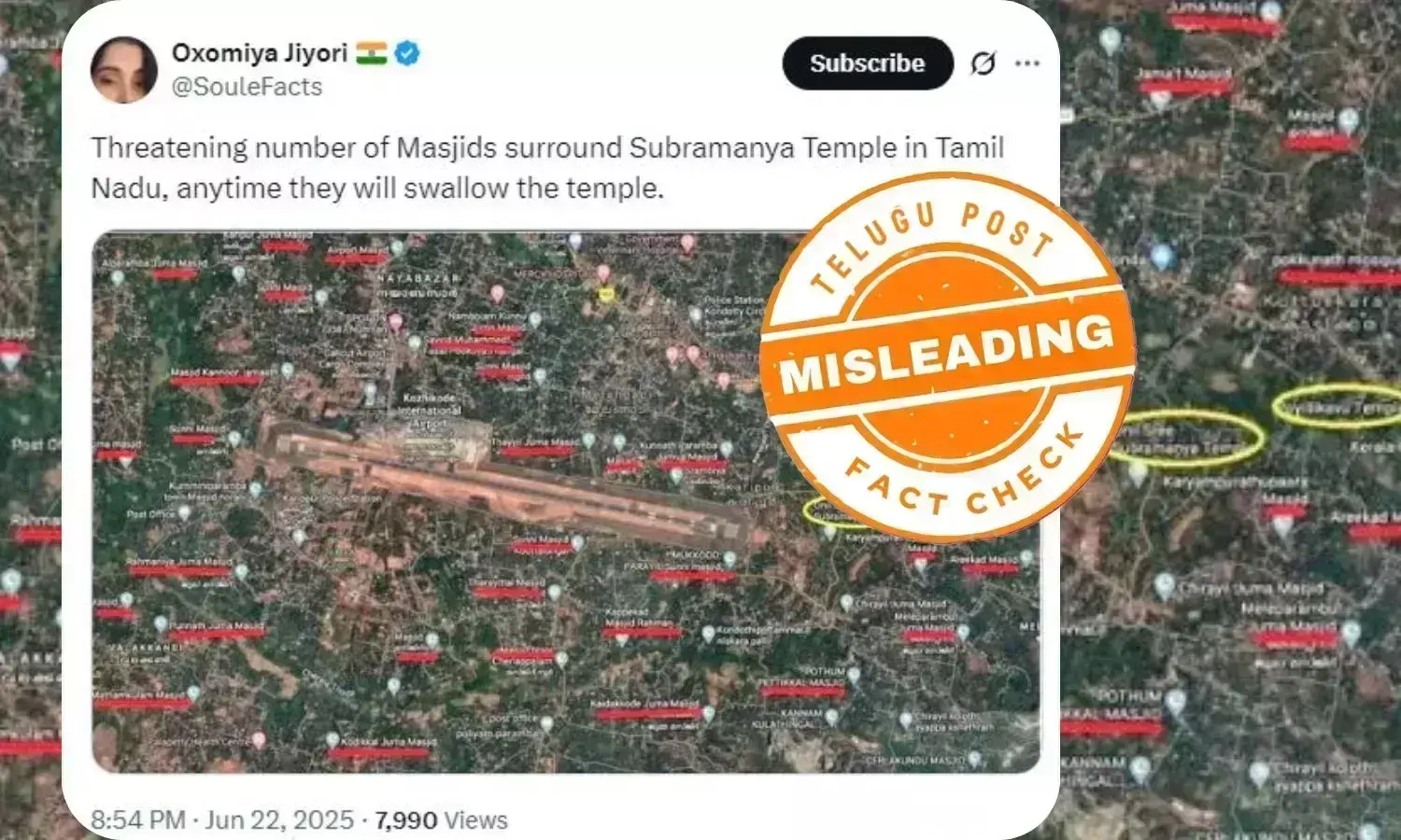 تلگو پوسٹ کی فیکٹ چیک ٹیم نے وائرل پوسٹ میں کئے گئے دعوے کی جانچ پڑتال کے بعد پایا کہ اس میں اشتعال انگیز اور فرقہ وارانہ نوعیت کا دعویٰ کیا گیا ہے جبکہ گوگل میاپس کے مشاہدے سے یہ واضح ہوجاتا ہیکہ یہ علاقہ تمل ناڈو کا نہیں بلکہ کیرلہ کا ہے۔