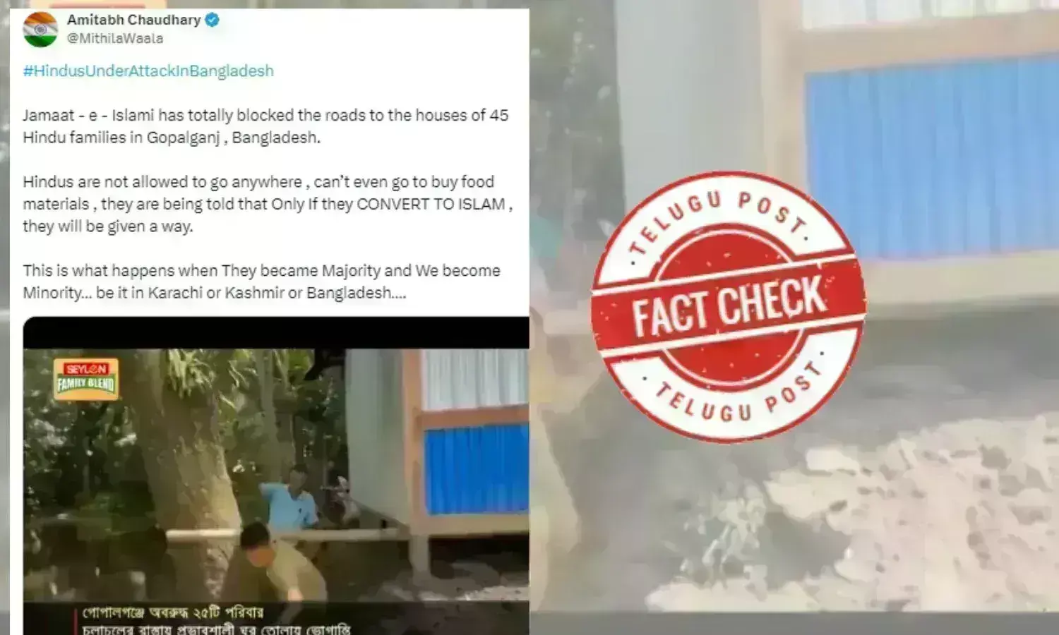 وائرل ٹوئیٹ میں بنگلہ دیش کے نجی نیوز چینل جمنا ٹی وی کی رپورٹ شامل کی گئی ہے جس میں بتایا گیا ہیکہ گوپال گنج میں ایک بااثر مقامی شخص نے 25 ہندو خاندانوں کے گھروں کی طرف جانے والی کچی سڑک پر قبضہ کرکے راتوں رات مکان تعمیر کرکے انک کا چلنے پھرنے کا راستہ بند کردیا ہے اور متبادل سڑک نہ ہونے کی وجہ سے ان لوگوں کو گھر سے باہر جانے کیلئے مشکلات کا سامنا کرنا پڑرہا ہے۔