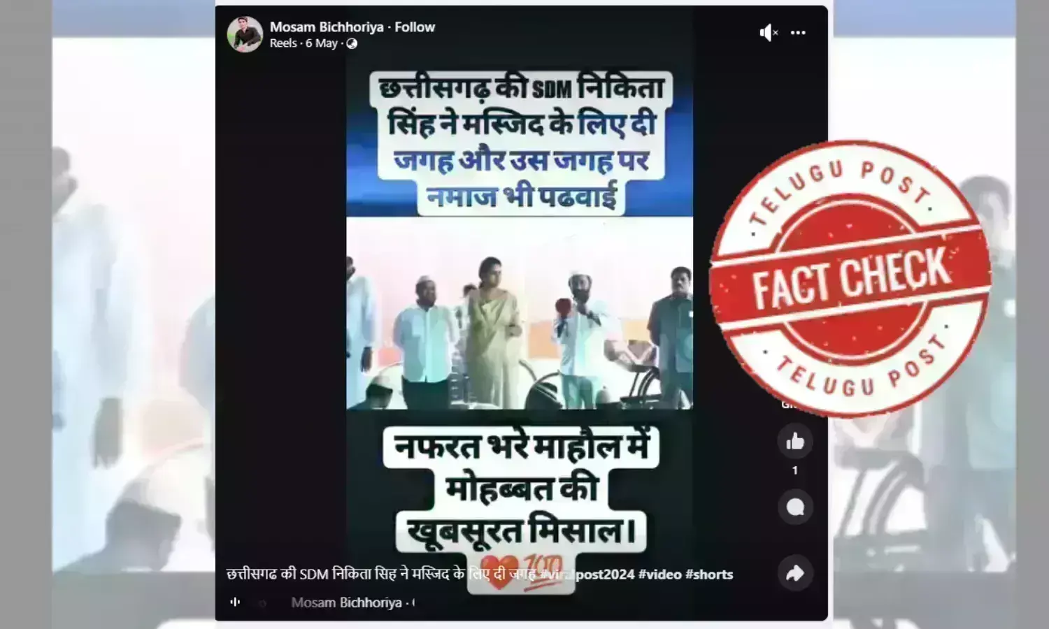 وائرل ویڈیو میں چھتیس گڑھ کی سب ڈویژنل مجسٹریٹ نکیتا سنگھ کو دکھایا گیا ہے جنہوں نے ایک مسجد کو زمین کا عطیہ دیا اور اس میں پڑھی گئی نماز میں شرکت کی۔