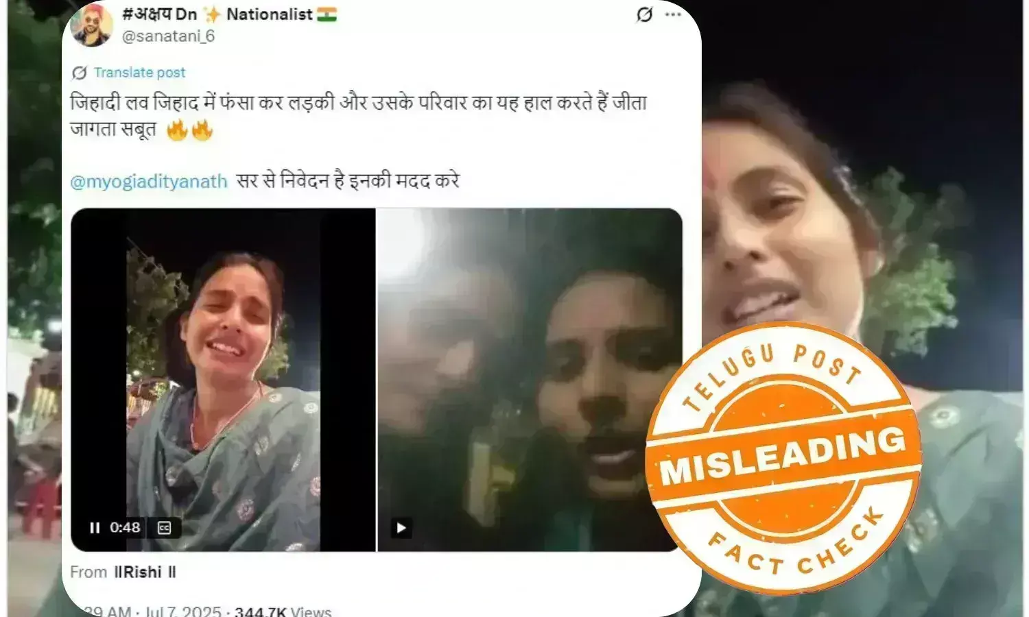 وائرل ویڈیو میں ہندو خاتون کو مظلوم دکھا کر ‘لو جہاد’ کا دعویٰ کیا گیا، جبکہ تحقیق میں یہ بات سامنے آئی کہ یہ خاندانی جائیداد کا تنازعہ ہے، نہ کہ کوئی فرقہ وارانہ مسئلہ
