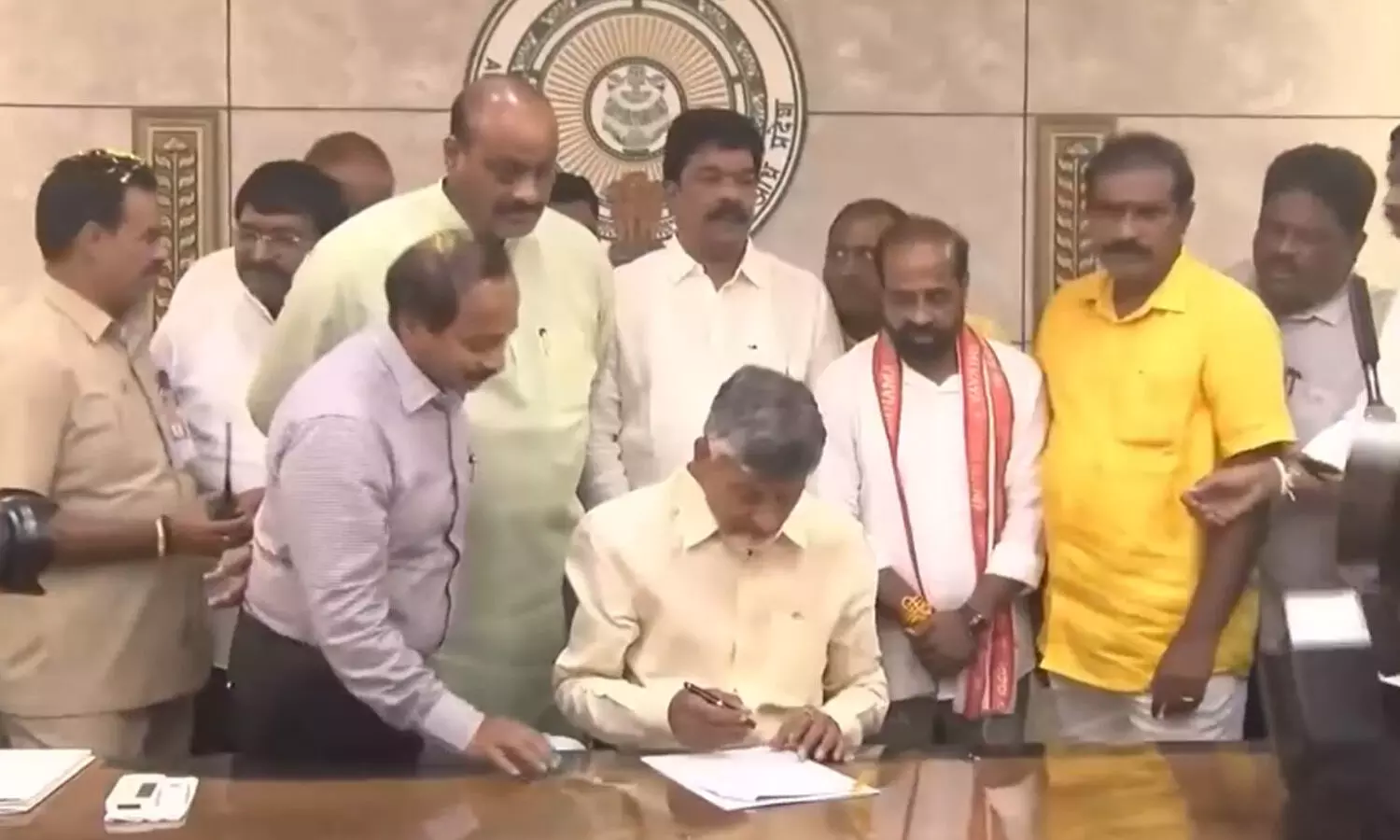 Chandrababu : ముఖ్యమంత్రిగా చంద్రబాబు బాధ్యతల స్వీకరణ.. ఐదు ఫైళ్లపై సంతకం