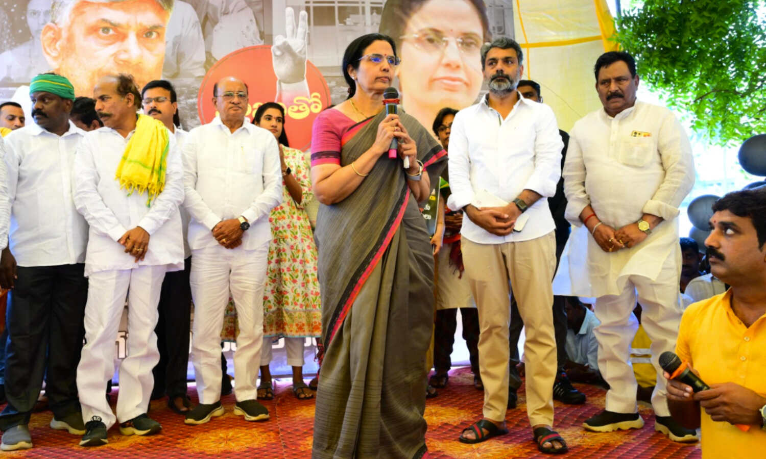 టీడీపీ అధినేత చంద్రబాబు అరెస్ట్ కు నిరసనగా రాష్ట్రవ్యాప్తంగా టీడీపీ శ్రేణులు దీక్షలు చేస్తున్నారు. తూర్పు గోదావరి జిల్లా రాజానగరం నియోజకవర్గం సీతానగరంలో చేపట్టిన నిరసన దీక్షలో చంద్రబాబు భార్య నారా భువనేశ్వరి పాల్గొన్నారు. చంద్రబాబు ప్రజల సొమ్మేమీ దోచుకోలేదు. అయినా జైల్లో నిర్బంధించారు. ఆయన కోసం మీరందరూ పోరాటానికి వచ్చారు. ప్రజల మనిషిని జైల్లో వేసి 19 రోజులైంది... ఏం తప్పు చేశారో ఒక్కటన్నా నిరూపించారా? అంటూ ప్రశ్నించారు భువనేశ్వరి. 45 ఏళ్ల రాజకీయ ప్రస్థానంలో చంద్రబాబుపై ఎన్నో కేసులు పెట్టారు, ఏ ఒక్కటైనా నిరూపించగలిగారా? సుదీర్ఘంగా రాజకీయాల్లో ఉండి ప్రజల కోసమే చంద్రబాబు పనిచేశారన్నారు. స్కిల్ డెవలెప్ మెంట్ సెంటర్ల ద్వారా 2 లక్షల మందికి పైగా యువతకు శిక్షణ ఇచ్చారన్నారు భువనేశ్వరి. టీడీపీ కార్యకర్తలు చంద్రబాబు బిడ్డల్లాంటి వాళ్లు. కుటుంబ పెద్దను హింసించి జైల్లో పెడితే బిడ్డలు ఊరుకుంటారా? నిరసనలు తెలిపితే హత్యాయత్నం కేసులు పెడుతున్నారు. శాంతియుతంగా జరిగే నిరసనలపై పోలీసులు దాడులు చేస్తూ మహిళలను కూడా వ్యానుల్లో ఎక్కించి పోలీస్ స్టేషన్లో పెడుతున్నారని ఆరోపించారు భువనేశ్వరి.
