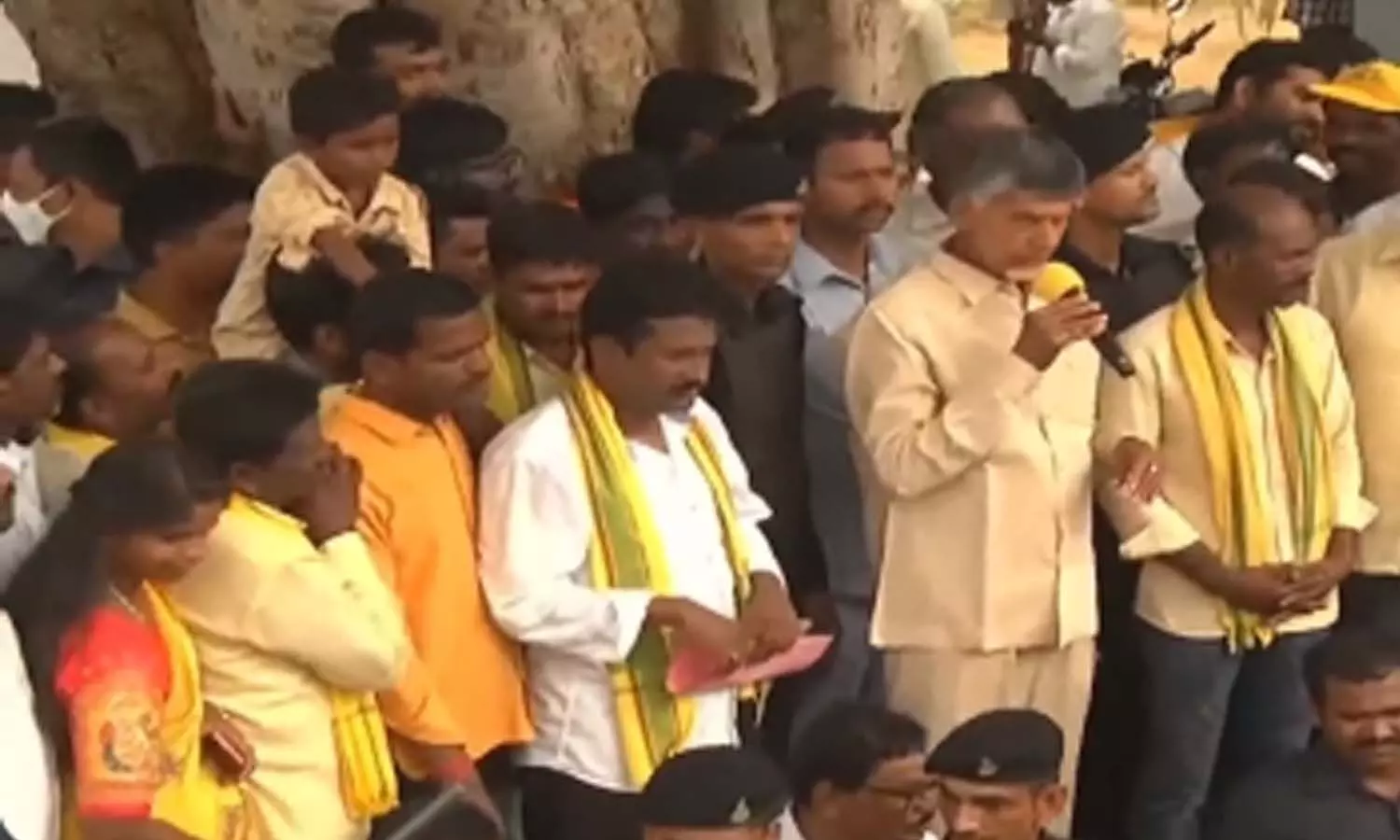 తండ్రి వైఎస్ రాజశేఖర్ రెడ్డిని అడ్డంపెట్టుకుని లక్షల కోట్లను దోచుకున్నారని చంద్రబాబు ఫైర్ అయ్యారు వాలంటీర్ల ద్వారా ప్రజల వ్యక్తిగత స్వేచ్ఛను హరించే ప్రయత్నం జరుగుతుందని చంద్రబాబు ఆందోళన వ్యక్తం చేశారు. పోలీసులు సివిల్ డ్రస్సులో వైసీపీ కార్యకర్తల్లా మారి గూండాల్లా వ్యవహరిస్తున్నారన్నారు. వారిపై ప్రయివేటు కేసులు వేస్తామని హెచ్చరించారు. తాము అధికారంలోకి రాగానే అటువంటి అధికారుల పనిపడతామని హెచ్చరించారు. ఈ ప్రభుత్వం కోతల, రోతల ప్రభుత్వమని చంద్రబాబు దుయ్యబట్టారు
