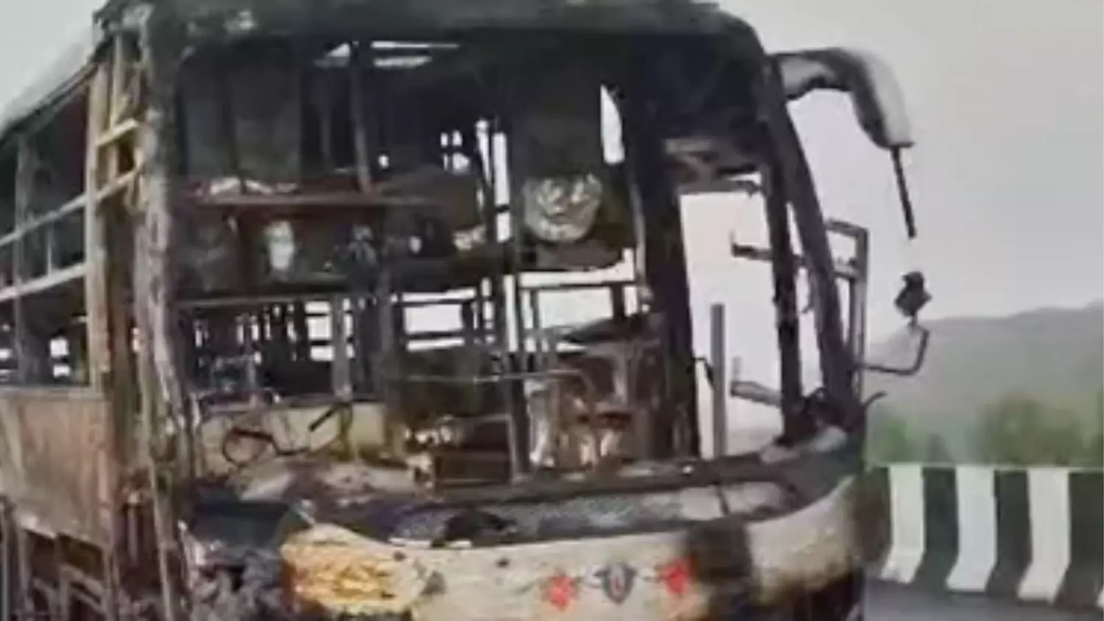 షార్ట్ సర్క్చూట్ కారణంగానే మంటలు వచ్చాయని తెలిపారు. బస్సు మొత్తం దగ్దం అయింది. మంటల్ని గుర్తించిన బస్సు డ్రైవర్ వెంటనే బస్సును నిలిపేసి ప్రయాణికులను కిందకు దింపేశాడు. అయితే ప్రమాద సమయంలో బస్సులో ఆరుగురు ప్రయాణికులు, నలుగురు సిబ్బంది ఉన్నారని చెబుతున్నారు. రహదారిపై ట్రాఫిక్ ఇబ్బందులు ఏర్పడ్డాయి. అగ్నిమాపక శకటం వచ్చి మంటలను ఆర్పింది. వేరే బస్సులో ప్రయాణికులను తరలించారు.
