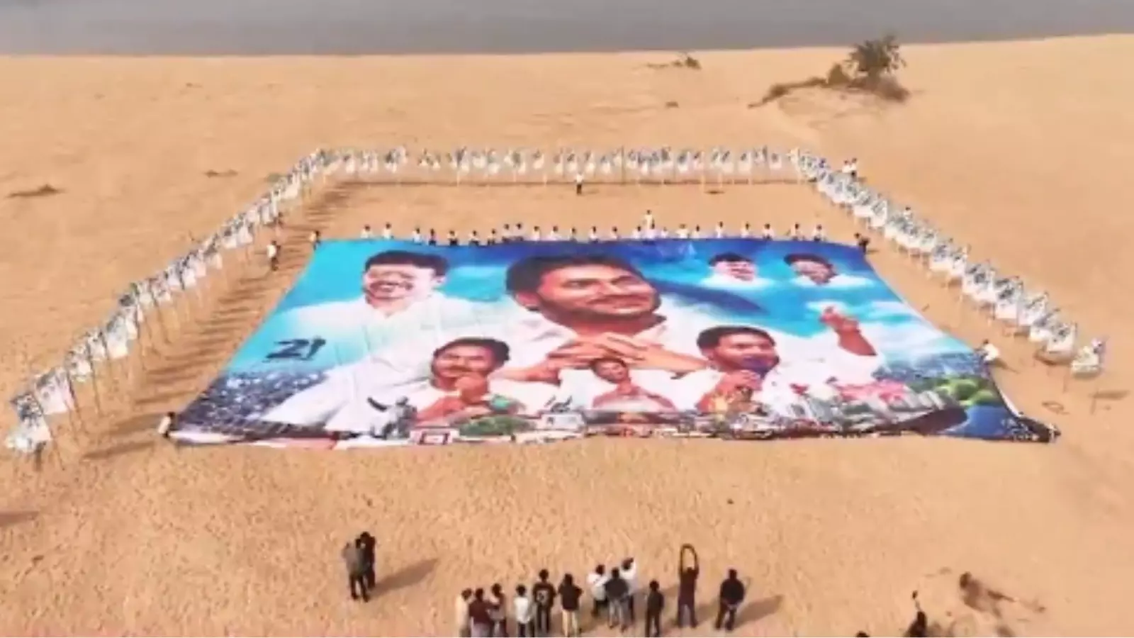 డ్రోన్ నుంచి తీసిన విజువల్స్ ఇప్పుడు సోషల్ మీడియాలో వైరల్ గా మారాయి. ఫ్లెక్సీని ఏర్పాటు చేయడమే కాకుండా దాని చుట్టు నిలబడి జై జగన్.. జై వైసీపీ అంటూ నినాదాలు చేస్తూ కనిపించారు. రాష్ట్ర వ్యాప్తంగా జగన్ పుట్టిన రోజు వేడుకలను పార్టీ నేతలు, కార్యకర్తలు జరుపుకుంటున్నారు. మంగళగిరి పార్టీ కేంద్ర కార్యాలయంలోనూ నేతలు నేడు కేక్ కట్ చేసి సంబరాలు జరుపుకోనున్నారు.