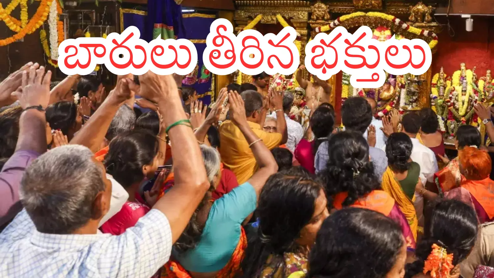 తిరుమలలో నేడు భక్తుల రద్దీ పెరిగింది. బయట వరకూ క్యూ లైన్ విస్తరించింది. వైకుంఠ ద్వార దర్శనం కోసం భక్తులు బారులు తీరారు. ఆదివారం కావడంతో భక్తులు అధిక సంఖ్యలో తిరుమలకు తరలి వచ్చారు. భక్తులు ఇబ్బందులు పడకుండా అవసరమైన అన్ని చర్యలను తిరుమల తిరుపతి దేవస్థానం అధికారులు తీసుకుటున్నారు. క్యూ లైన్ లో ఉన్న భక్తులకు శ్రీవారి సేవకులు అన్న ప్రసాదం, మజ్జిగ, మంచినీరు, పాలు క్యూ లైన్ లో ఉన్నభక్తులకు అందిస్తున్నారు.భక్తులు ఇబ్బందులు పడకుండా అవసరమైన అన్ని జాగ్రత్తలు టీటీడీ అధికారులు తీసుకుంటున్నారు.