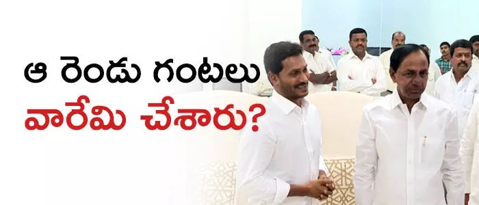 ఎపి తెలంగాణ ముఖ్యమంత్రులు రెండుగంటలపాటు సాగించిన అంతర్గత చర్చలు తెలుగు రాష్ట్రాల్లో హాట్ టాపిక్ అయ్యాయి. టిడిపి అధికారంలో వున్నప్పుడు కత్తులు దూసుకున్న తీరులో ఇరు రాష్ట్రాల సిఎం లు వ్యవహరిస్తే వైసిపి అధికారంలోకి వచ్చినప్పటినుంచి కౌగిలింతల ముఖ్యమంత్రులుగా కెసిఆర్, వైఎస్ జగన్ మారిపోయారు. వీరి బలమైన ఐఖ్యత విభజన చిక్కుముళ్ళు విడతీసేందుకు ఉపకరిస్తుందని తెలుగు ప్రజలు బలంగా నమ్ముతున్నారు. తాజాగా కాళేశ్వరం ప్రాజెక్ట్ ప్రారంభోత్సవానికి ఎపి ముఖ్యమంత్రిని ఆహ్వానించేందుకు అమరావతి వచ్చిన కెసిఆర్ జగన్ తో సుదీర్ఘ భేటీ నిర్వహించారు. ఎపి సిఎం క్యాంప్ ఆఫీస్ లో జరిగిన ఈ చర్చల వివరాలను ఇద్దరు సిఎం లు వెల్లడించకపోవడంతో వీరి నడుమ భేటీ పై విభిన్న కథనాలు నెట్టింట విహరిస్తున్నాయి.