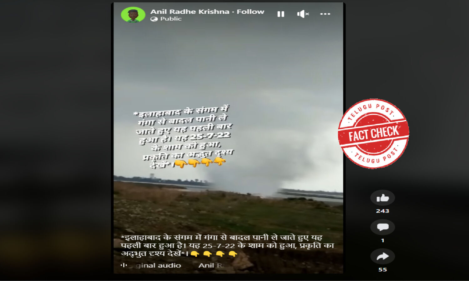 Several users shared the same video with claim in Hindi on all platforms of social media including Facebook, Twitter. The claim goes as “इलाहाबाद के संगम में गंगा से बादल पानी ले जाते हुए यह पहली बार हुआ है। प्रकृति का अद्भुत दृश्य देखें.... हर हर महादेव”.