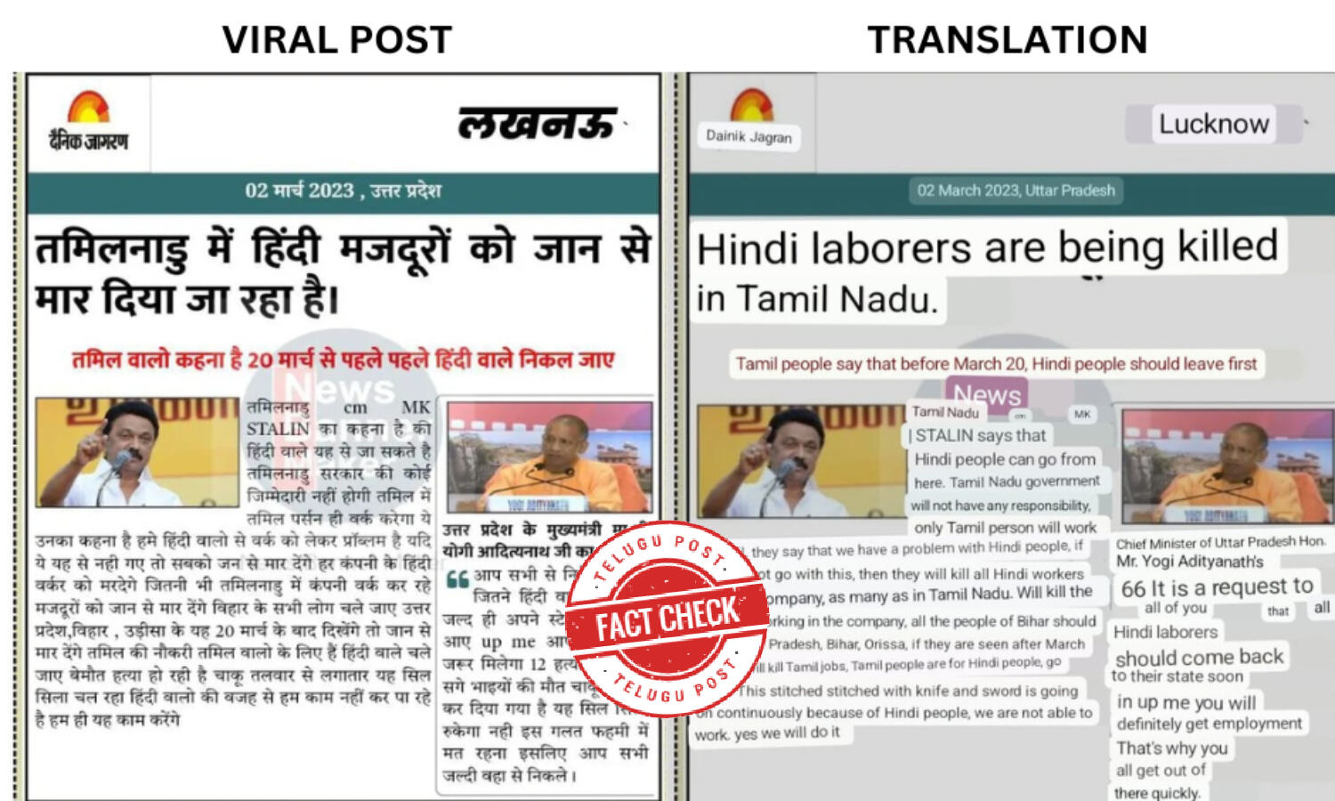 Fact Check: News clipping claiming Hindi-speaking labourers killed in Tamil Nadu is false