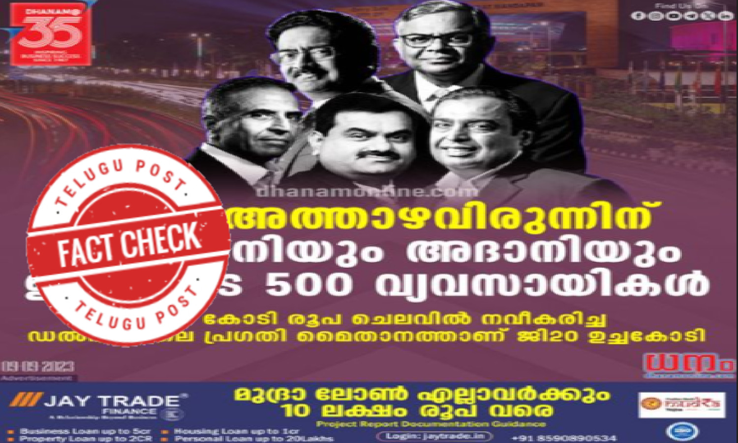 The post reads: “500 businessmen including Ambani and Adnai invited for G20 Dinner. The G20 Summit will be held at Pragati Maidan in Delhi, which has been renovated at the cost of Rs 2500 crore.”