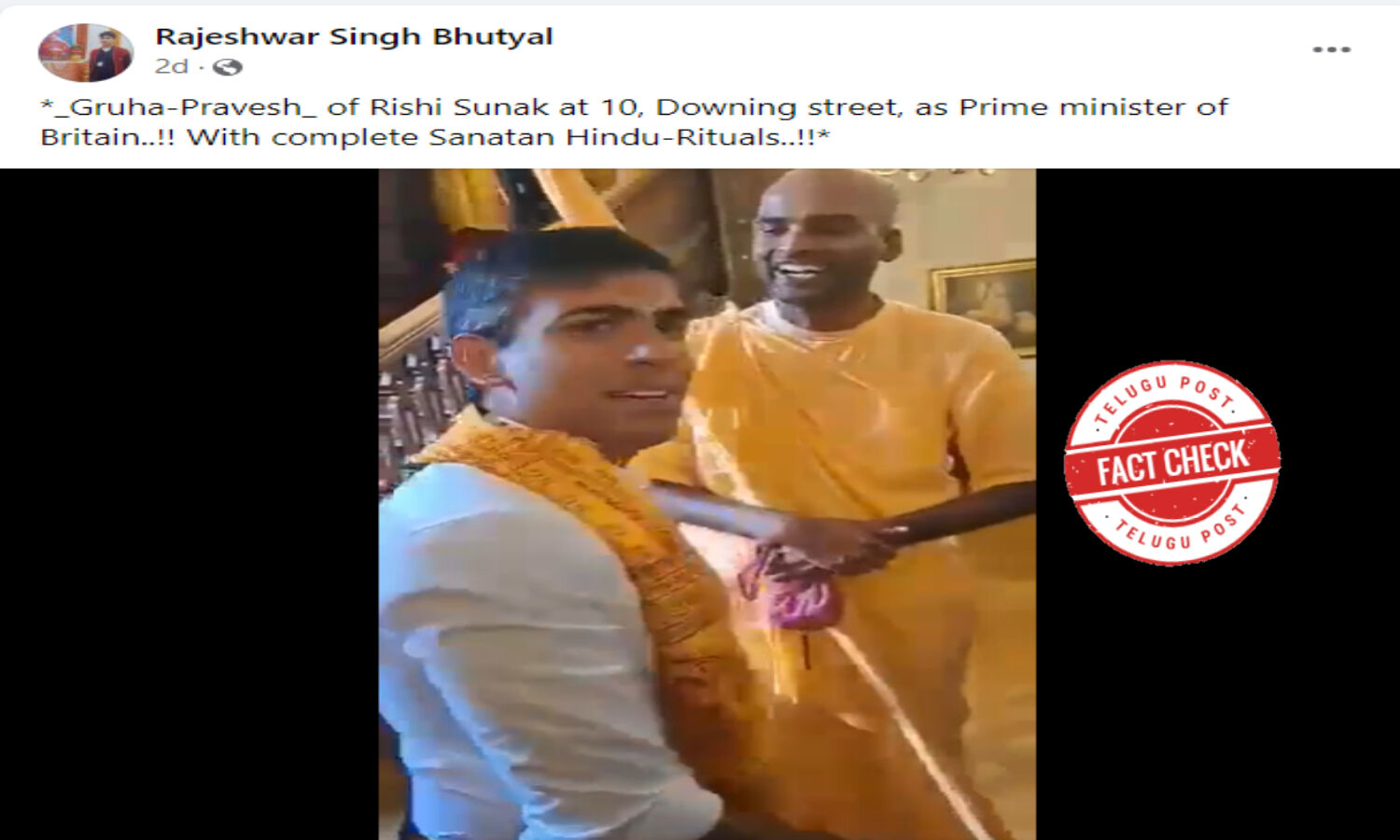 Users are sharing a video claiming about Sunak’s ‘griha pravesh’ (housewarming) and images of him lighting diyas at 10 Downing Street. Some others also shared videos with a claim that the new PM Rishi Sunak took blessings from vedic pundits on October 24, 2022.