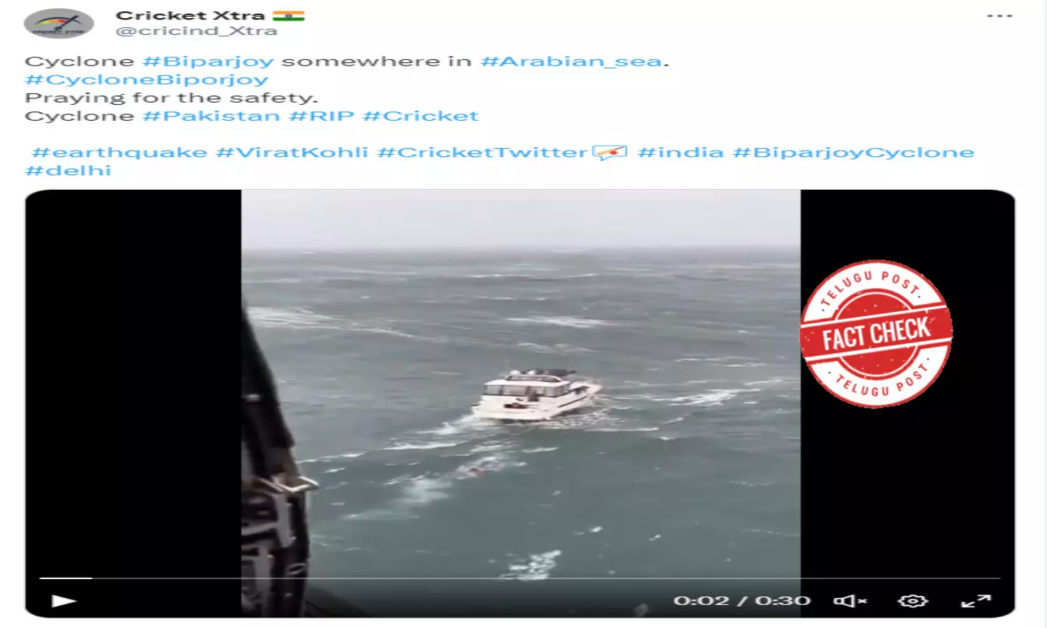 Meanwhile, several old videos are in circulation claiming to be showing destruction due to Cyclone Biparjoy. A video of the rescue operation of a boat drowning in seawater is in circulation with the claim that it was shot in the Arabian Sea during Cyclone Biparjoy.