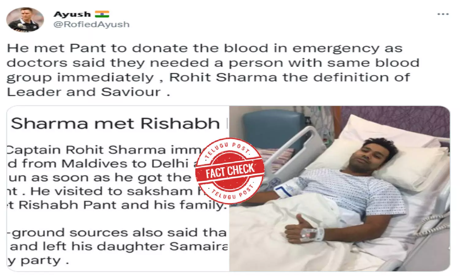 Fact Check: Rohit Sharma did not donate blood to Rishabh Pant