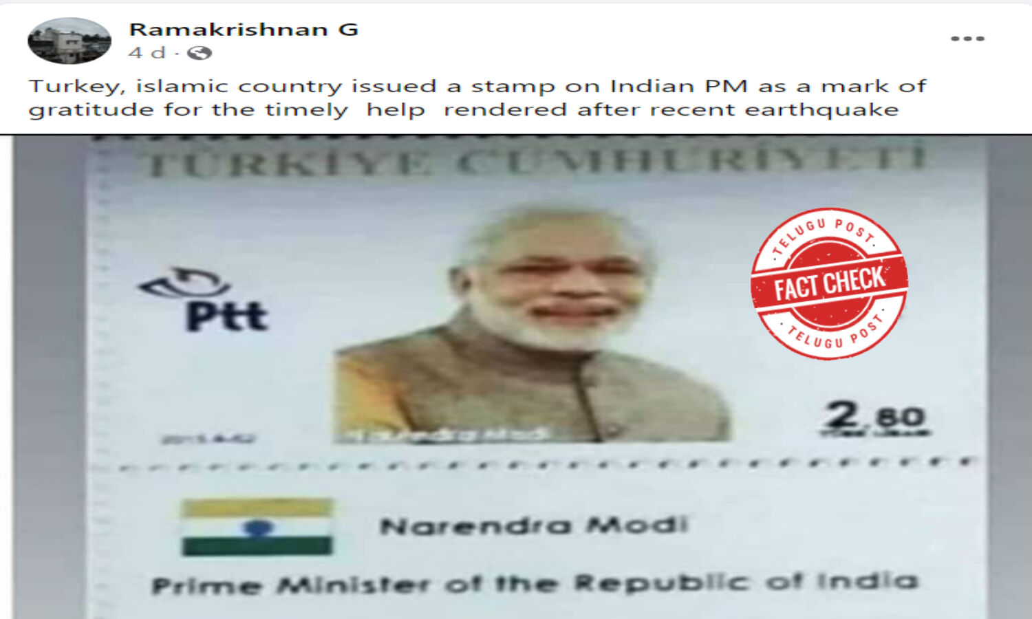 Hyderabad: A post on social media claims that the Turkish government has issued a special postage stamp featuring the image of Indian Prime Minister Narendra Modi, as a gesture of gratitude for India's prompt assistance to the country after it was hit by an earthquake recently.