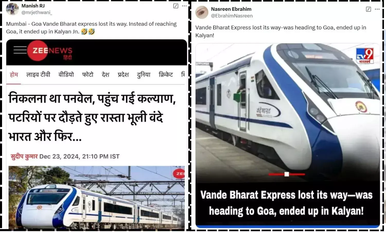 Meanwhile, a few social media users started sharing posts claiming that a Vande Bharat Express lost its way. Instead of reaching Goa, it ended up in Kalyan Junction.
