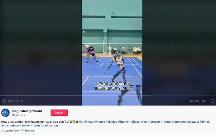A video of a 'robot' participating in a badminton game with two children is widely shared on social media. Netizens believe this to be a real match between a robot and humans.