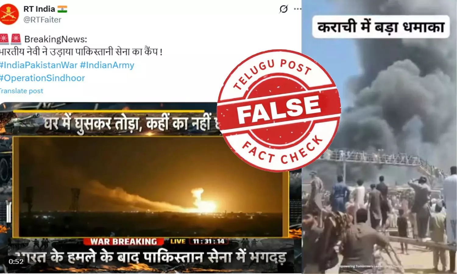 Meanwhile, several social media users are spreading misinformation, spreading old and unrelated videos and images relating them to ongoing India-Pakistan tensions. Telugupost has been debunking false and misleading narratives continuously in effort to provide accurate information to the audience and keep them informed. After India’s successful retaliation to the drone and missile attacks conducted by Pakistan, few videos are in circulation claiming that they show the visuals of the India’s attack on Karachi, Pakistan. Two different videos are in circulation with the same claims.
