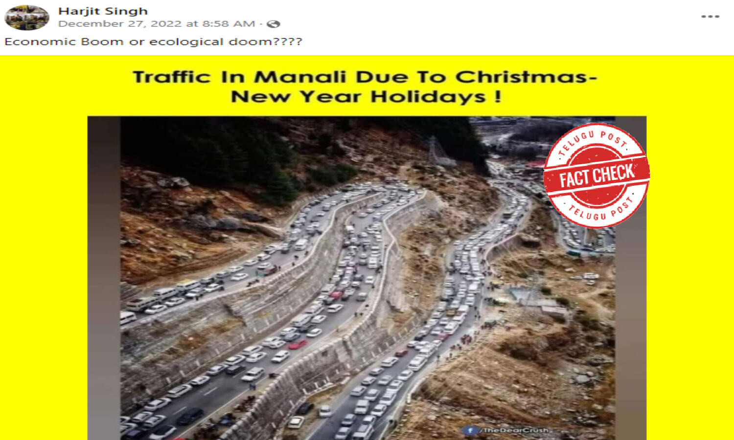 Hyderabad: An image is being shared on social media with a claim that it shows visuals of heavy traffic in Manali, Himachal Pradesh, owing to the Christmas-New Year holidays.