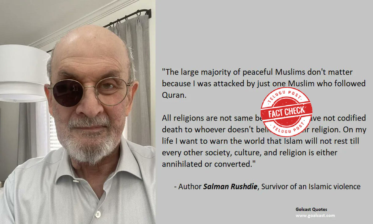 Fact Check: Viral tweet on anti-Islamic statement by Rushdie wrongly attributed to the novelist